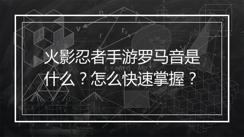 火影忍者手游罗马音是什么?怎么快速掌握? 一、引言 《火影忍者手游》作为一款深受广大动漫迷喜爱的手机游戏,其丰富的角色和精彩的战斗系统吸引了无数玩家。在游戏中,许多角色的名字和技能名称都采用了罗马音标注,这对于不熟悉日语的玩家来说可能是一个挑战。本文将详细介...
