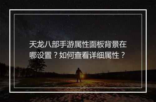 天龙八部手游属性面板背景在哪设置?如何查看详细属性? 在《天龙八部》手游中,属性面板是玩家了解和调整角色装备、技能等的重要工具。以下将详细介绍如何在游戏中设置属性面板背景以及如何查看角色的详细属性。 一、设置属性面板背景 1. 进入游戏,点击屏幕下方的“角色”按...