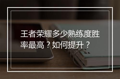 王者荣耀多少熟练度胜率最高?如何提升? 在王者荣耀这款游戏中,熟练度是衡量玩家操作水平的重要指标。许多玩家都想知道,在王者荣耀中,多少熟练度的胜率最高?如何提升自己的熟练度呢?本文将围绕这两个问题展开讨论。 一、王者荣耀多少熟练度胜率最高? 在王者荣耀中,熟...
