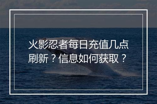 火影忍者每日充值几点刷新?信息如何获取? 在众多动漫游戏中,火影忍者因其丰富的剧情和独特的忍者文化深受玩家喜爱。作为一款热门的动漫游戏,火影忍者中的每日充值活动无疑为玩家提供了更多获取游戏资源的机会。然而,许多玩家对于每日充值刷新的具体时间以及如何获取相关...